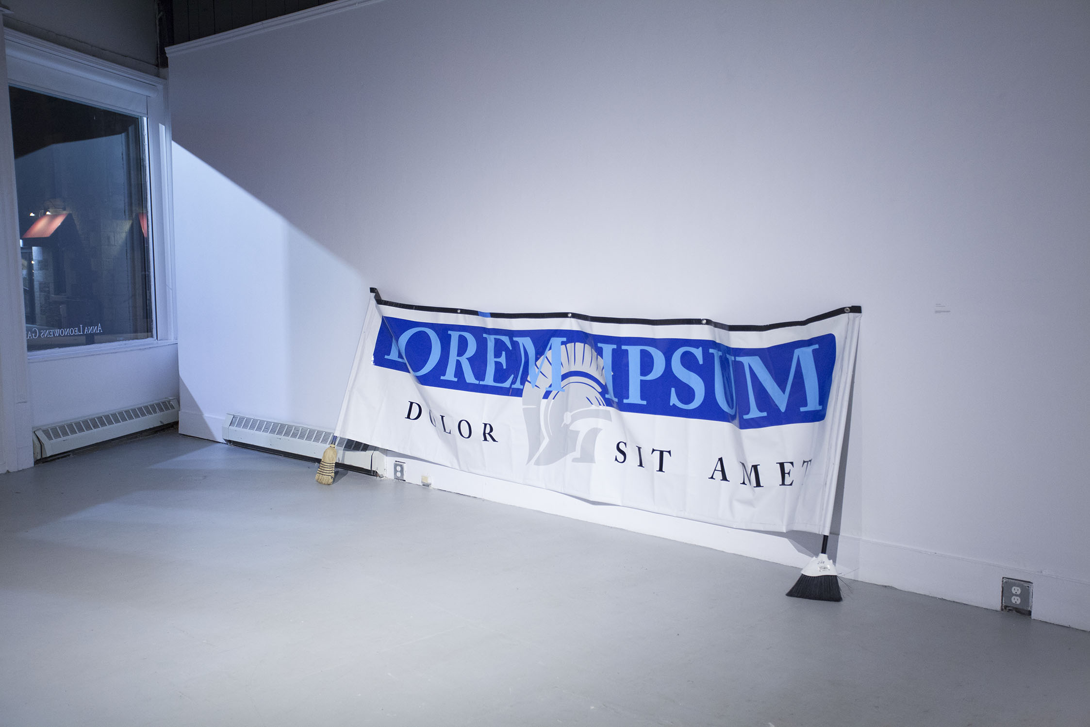 Created prior to the MFA group exhibition “Work in Progress” at the Anna Leonowens Gallery, this banner displays an intentional “placeholder” text as the group name. During the Natal Day Parade, the volunteer group of performers take turns carrying the banner and interact as a “wave” (as in the crowd at an arena), passing movement through and across themselves, initiated from within or from the audience themselves.