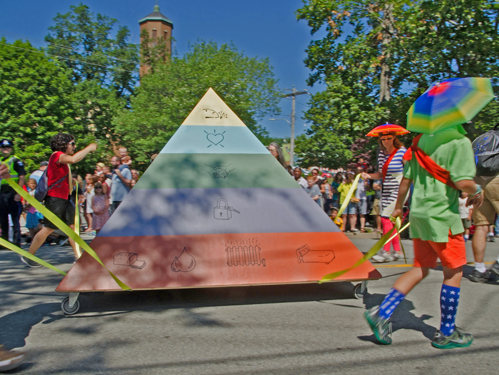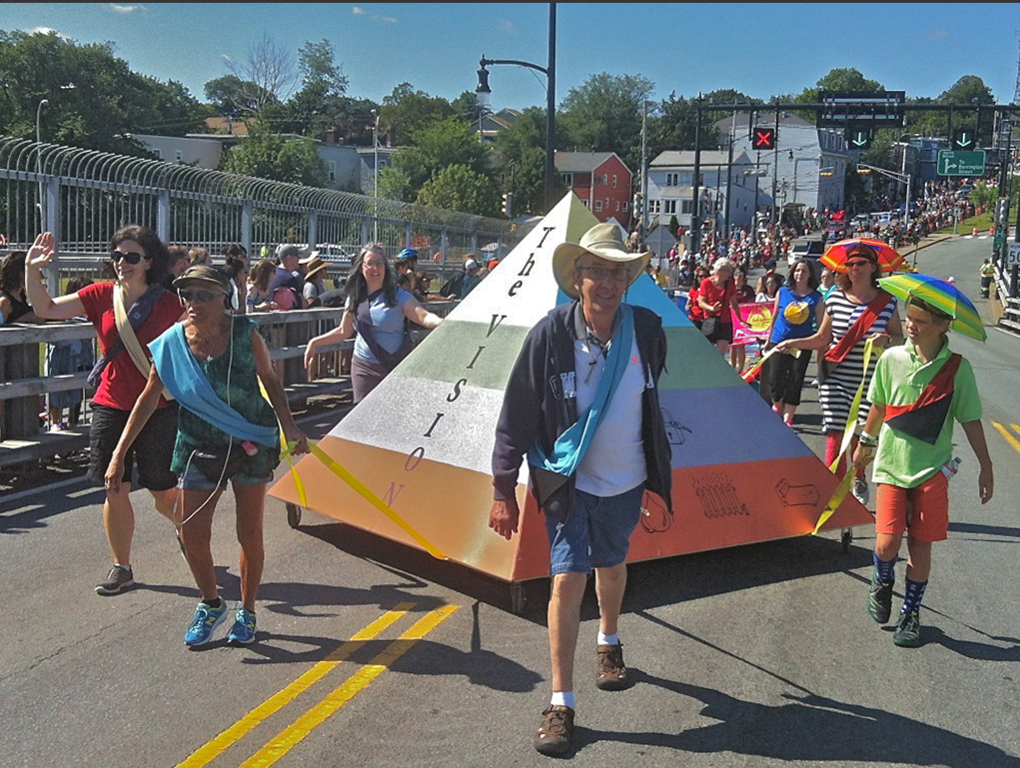Through a VANS residency at Halifax, a community float was conceived at the North Branch Public Library. In consultation with the library community members, The Vision project was derived from A. Maslow’s Hierarchy of Needs, after discussions around the issues facing the community. Volunteers brought the float from the parade start at Needham hill, across the Macdonald bridge and along the waterfront to Sullivan’s pond in Dartmouth – a 4km trek (see route below). I would like to thank Visual Arts Nova Scotia, and the North Branch Public Library for their support in realizing this project.