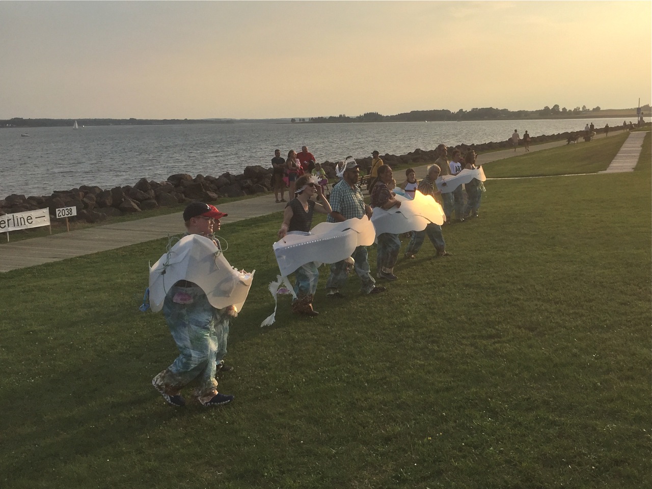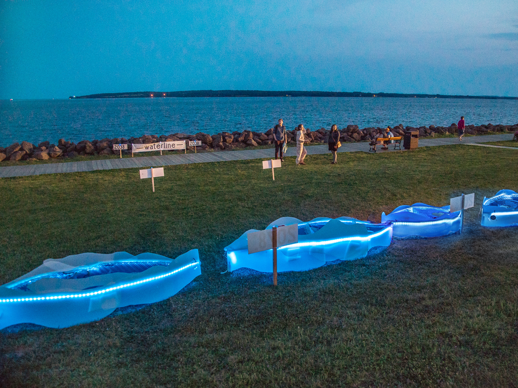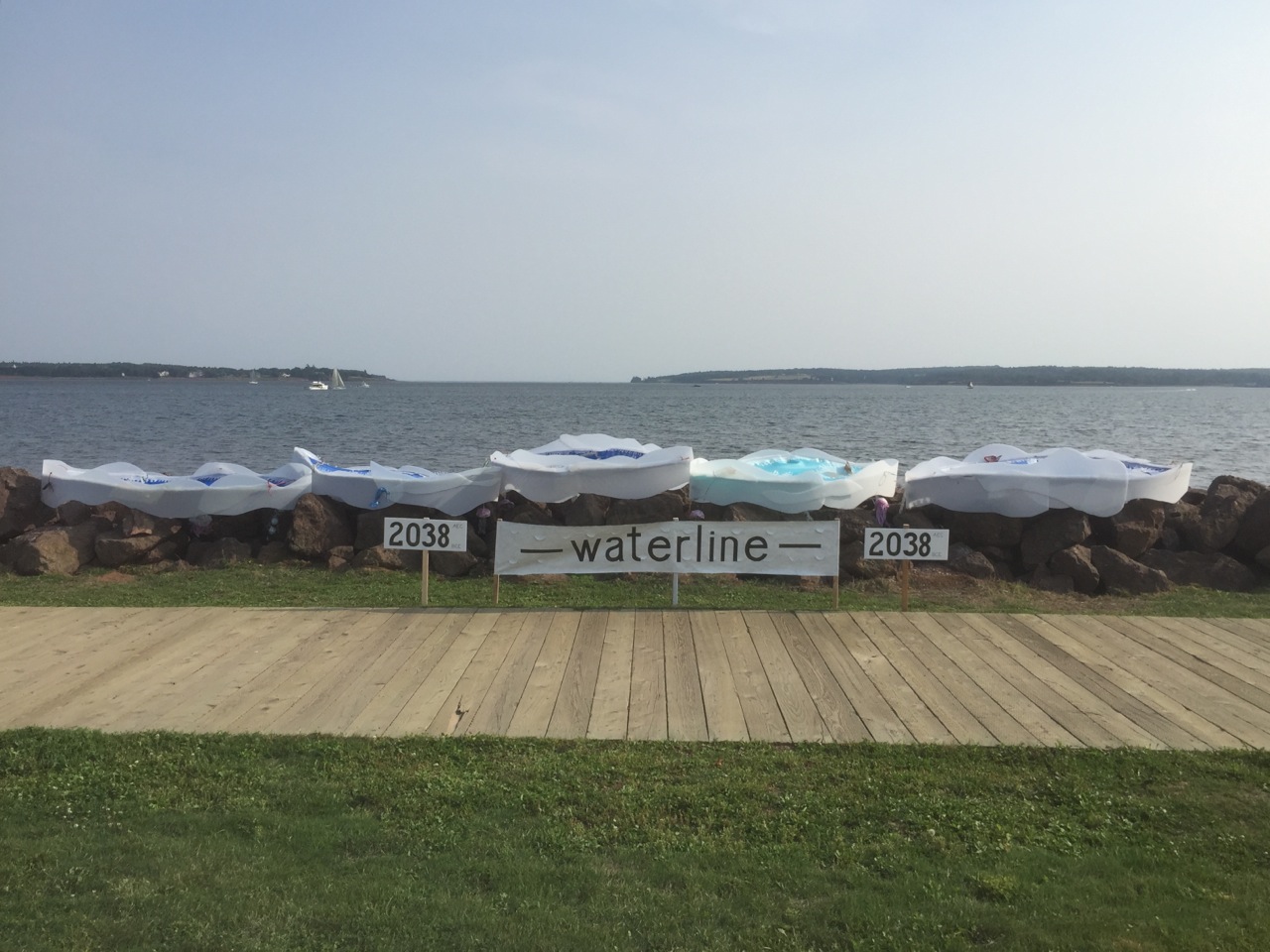 My works are always context specific, and having considered the theme of Art In The Open for 2018, “Future Tense”, my sculptural response was a project titled — waterline—, a social sculpture made through community participation during a residency at this town is small Charlottetown, PEI’s artist run center and performed during Art in the Open’s concluding evening. For video synopsis of this event, link here or below.