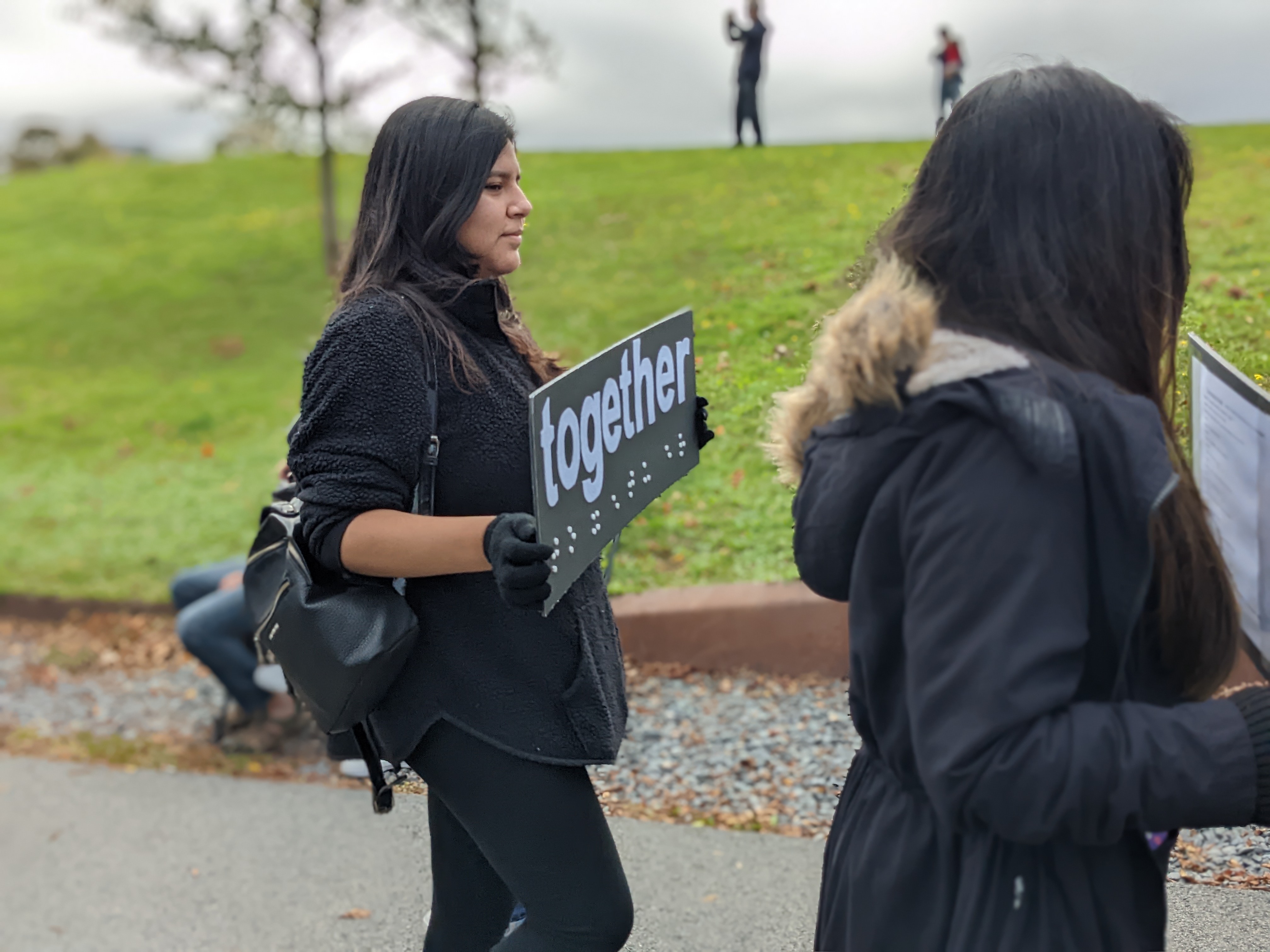 Shared learning experiences, studio spaces and overlapping interests have led Jessica and Sophie to Collabor-Active endeavours. Over the past few years, they have been interpreting public art spaces, leading pedagogical explorations with volunteers, and inter-being/acting during multilingual walks and parades. They are joined in this project with Maria Jose Yax Fraser, who volunteers with the Immigrant Migrant Women’s Association of Halifax (IMWAH) and Wonder’neath Open Studio participants.