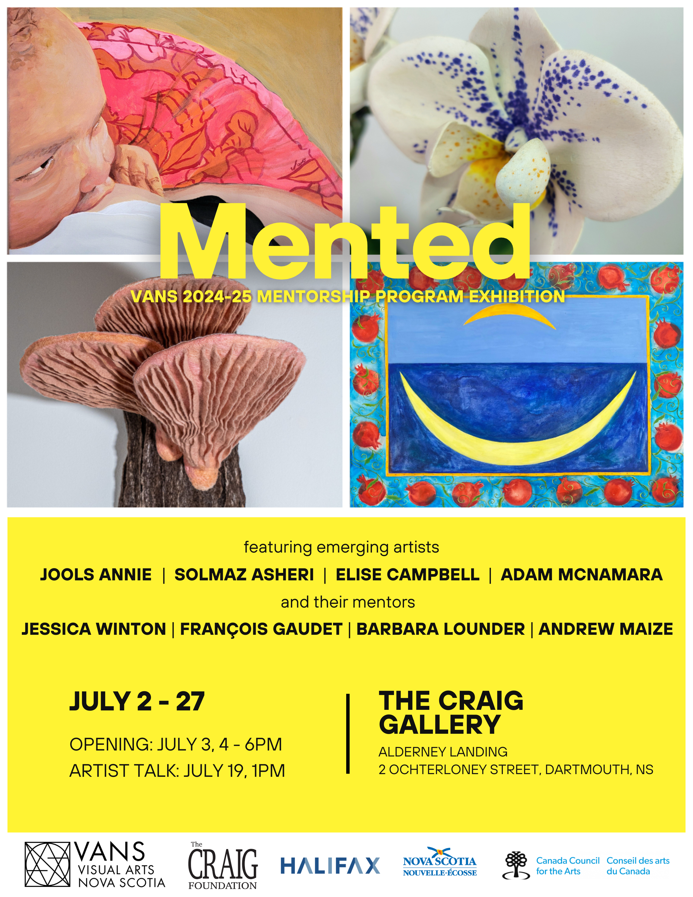 Chosen as a Mentor to Julia Hutt (@joolsannie) in the Visual Arts Nova Scotia Mentorship Program 2024/25, the season resulted in a group exhibition titled “Mented” at the Craig Gallery in Dartmouth, NS in the month of July. My mentee, Jools, has been painting intimate scenes of early motherhood, accordingly I contributed work representing the other end of the experience – late motherhood, as my child becomes adult.