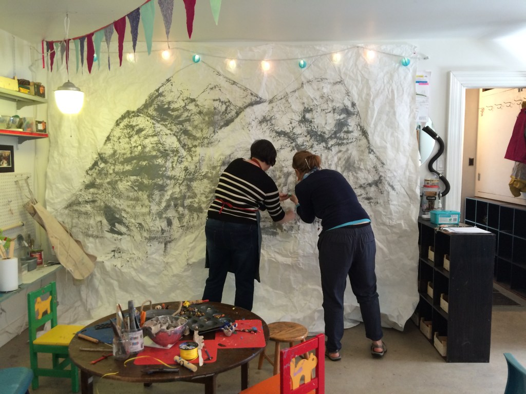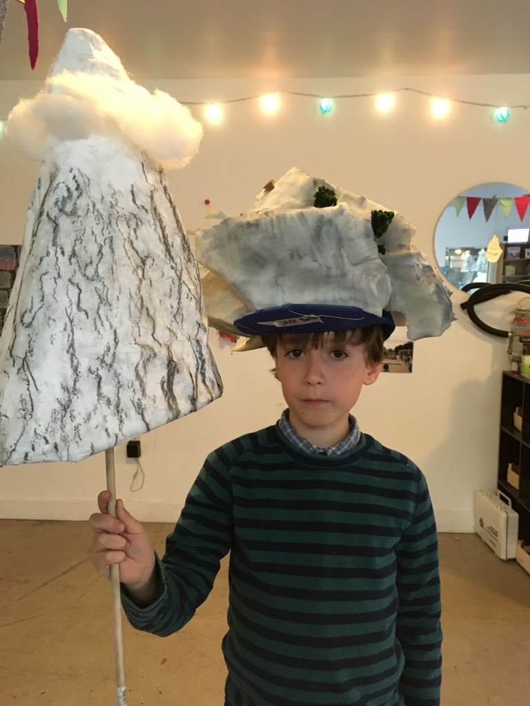 Moving Mountains began through the VANS residency program in the North end of Halifax, at Wonder’neath Art Studios on Friday and Saturday during Open Studio programming. Working together over the period of six weeks, participants created personalized mountain hats, mountain balloon props, magnetic “mountains” (obstacles in their lives) and 2 giant mountain range floats (lovingly named Twin Peaks and lil’guy) for the 2017 Natal Day Parade in Halifax, Nova Scotia.